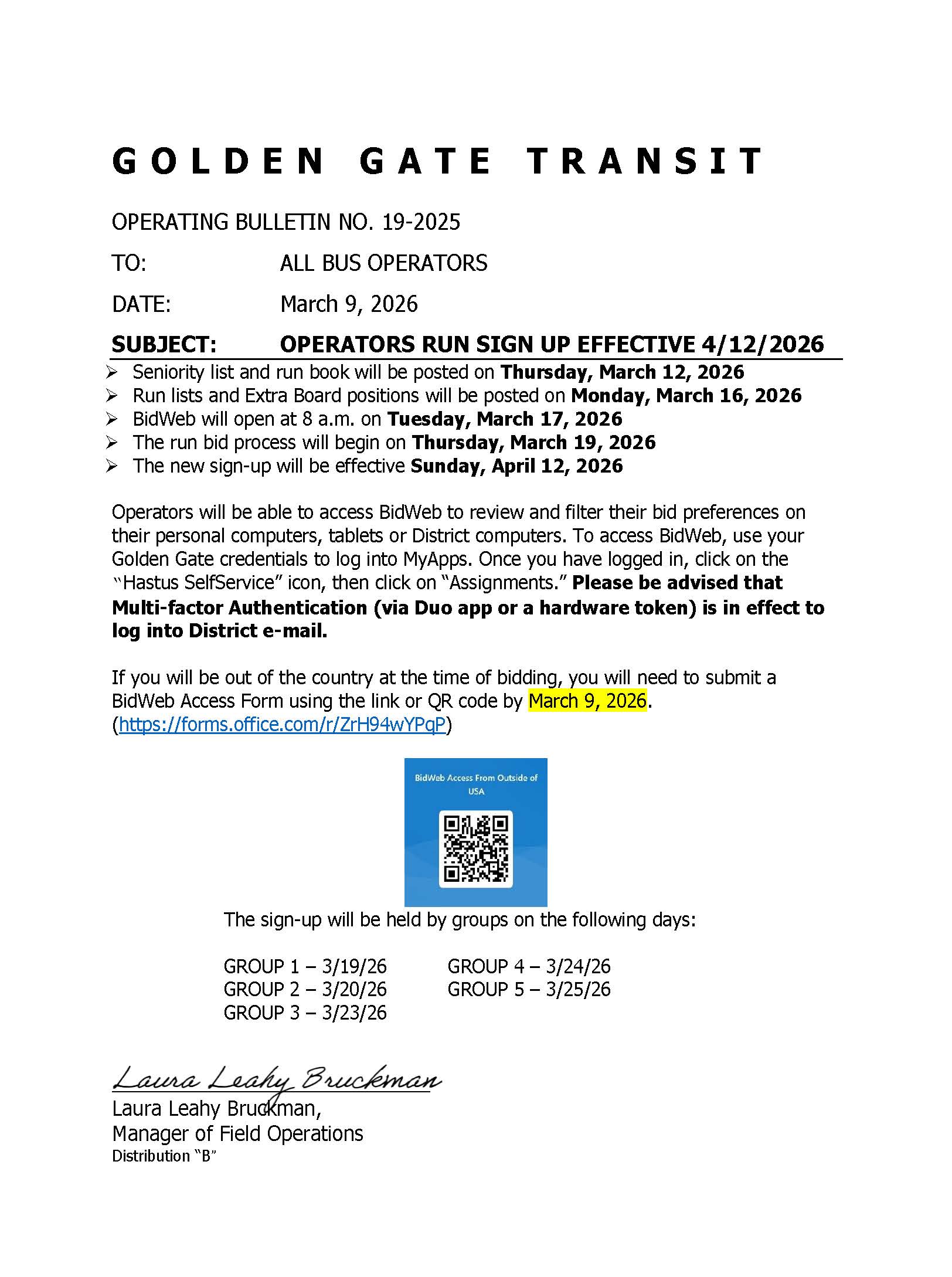Operator Run Bidding Begins