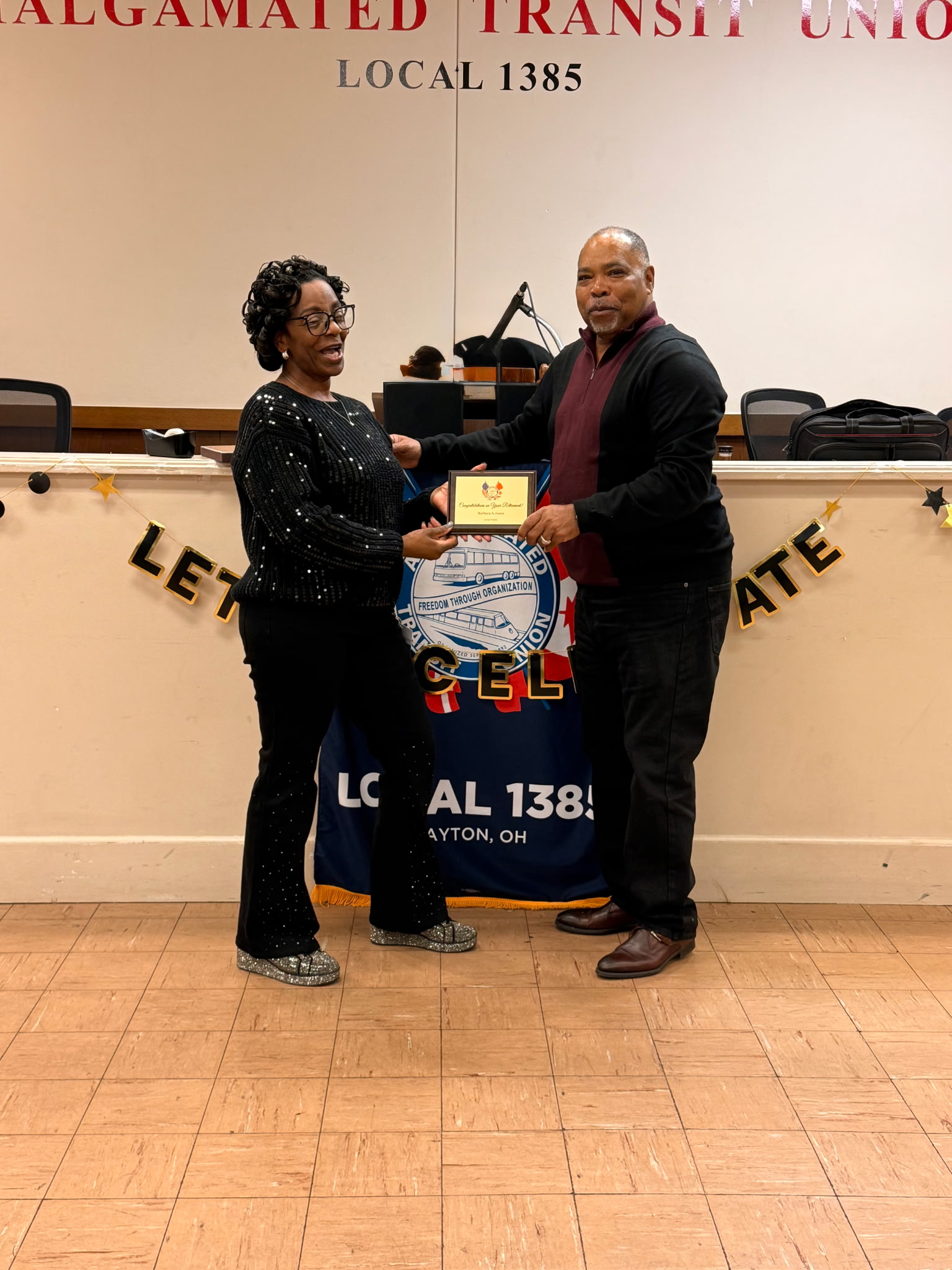 A.T.U. Local 1385 celebrated this special occasion at our December Meeting & presented each one with a special plaque!